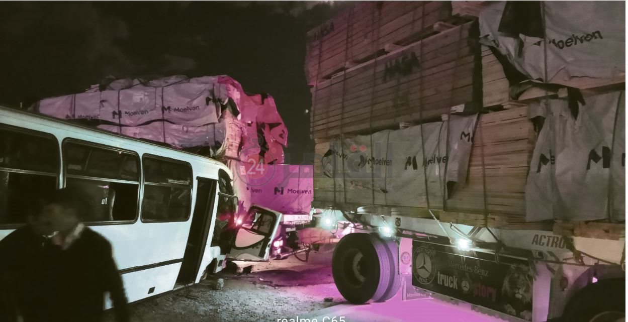تصادم بين أتوبيس وسيارة نقل على الطريق الدولي بجمصة