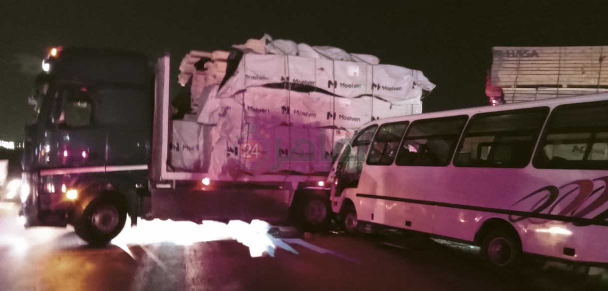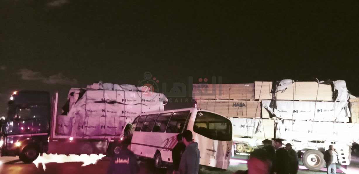 إصابة 27 شخصًا في حادث تصادم أتوبيس وسيارة نقل على الطريق الدولي بجمصة