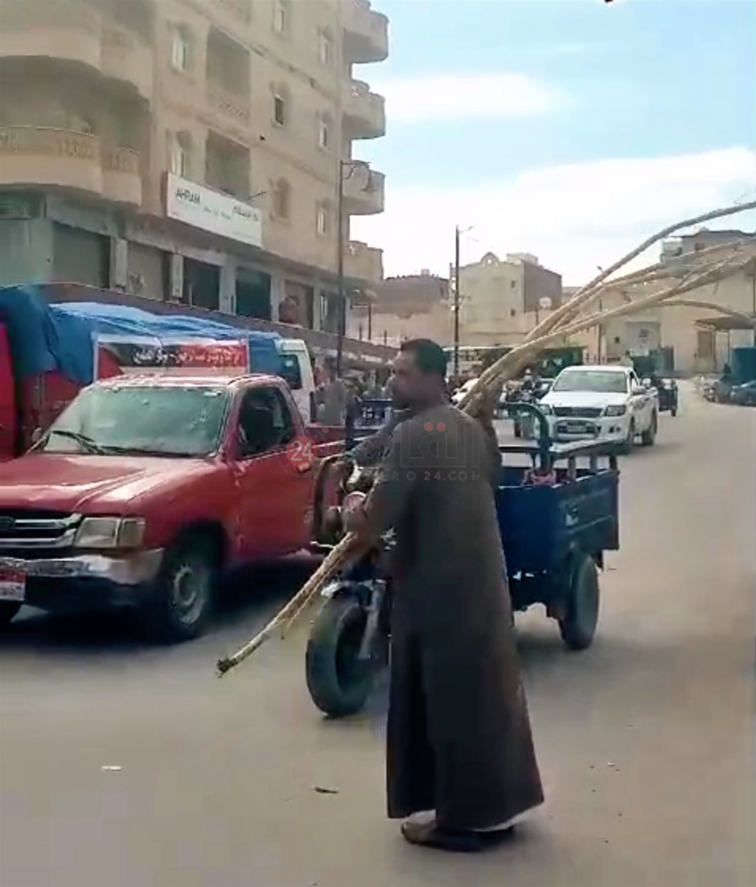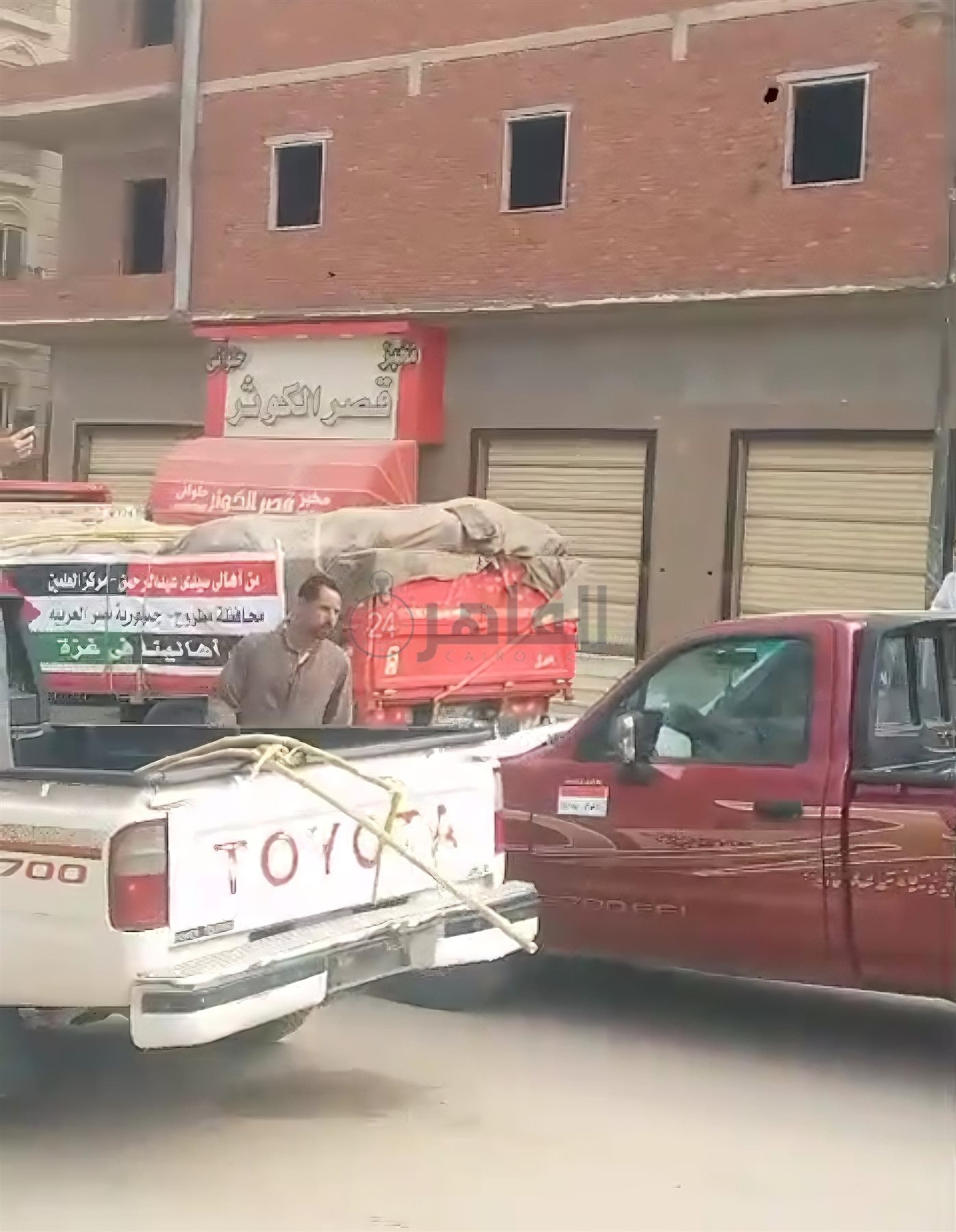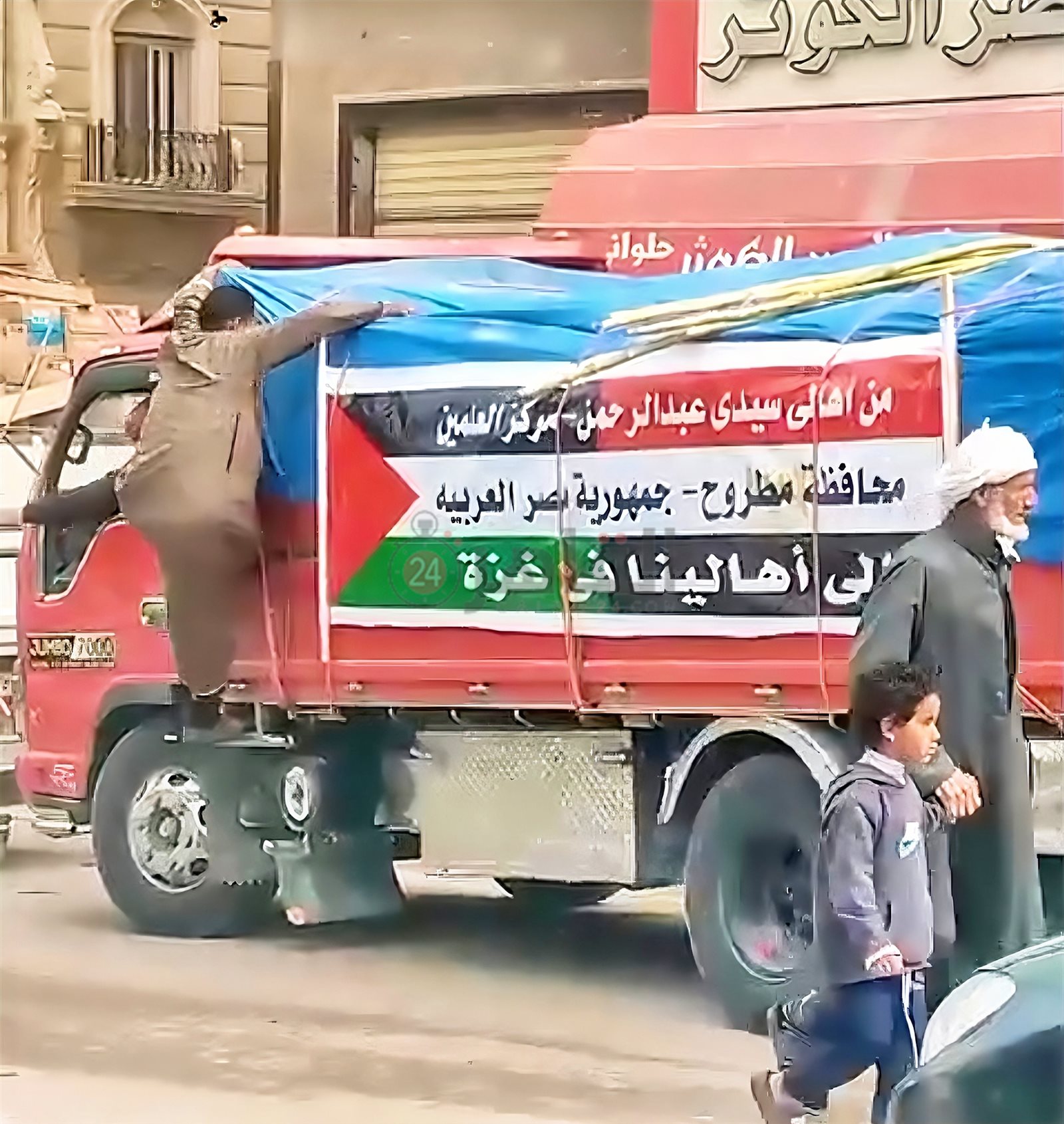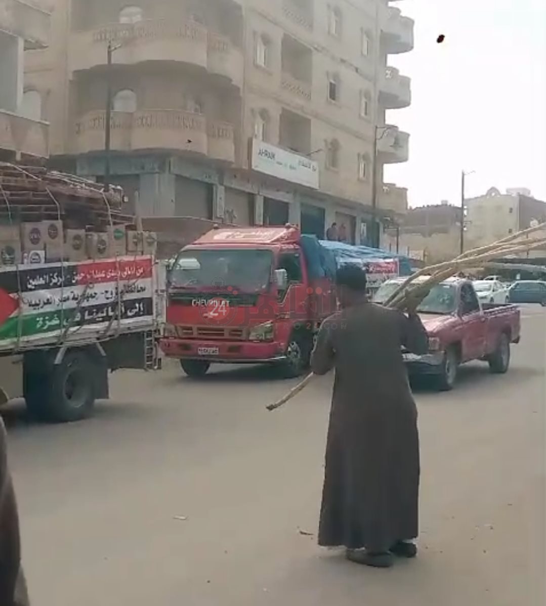 وحصل القاهرة 24، على مقطع فيديو وثق لحظات إلقاء العم أبو سيف، أحد أبناء مركز دشنا بمحافظة قنا، أعواد القصب في شاحنات المساعدات المتجهة من مطروح إلى قطاع غزة، وهو يردد: القصب لازم يروح فلسطين.