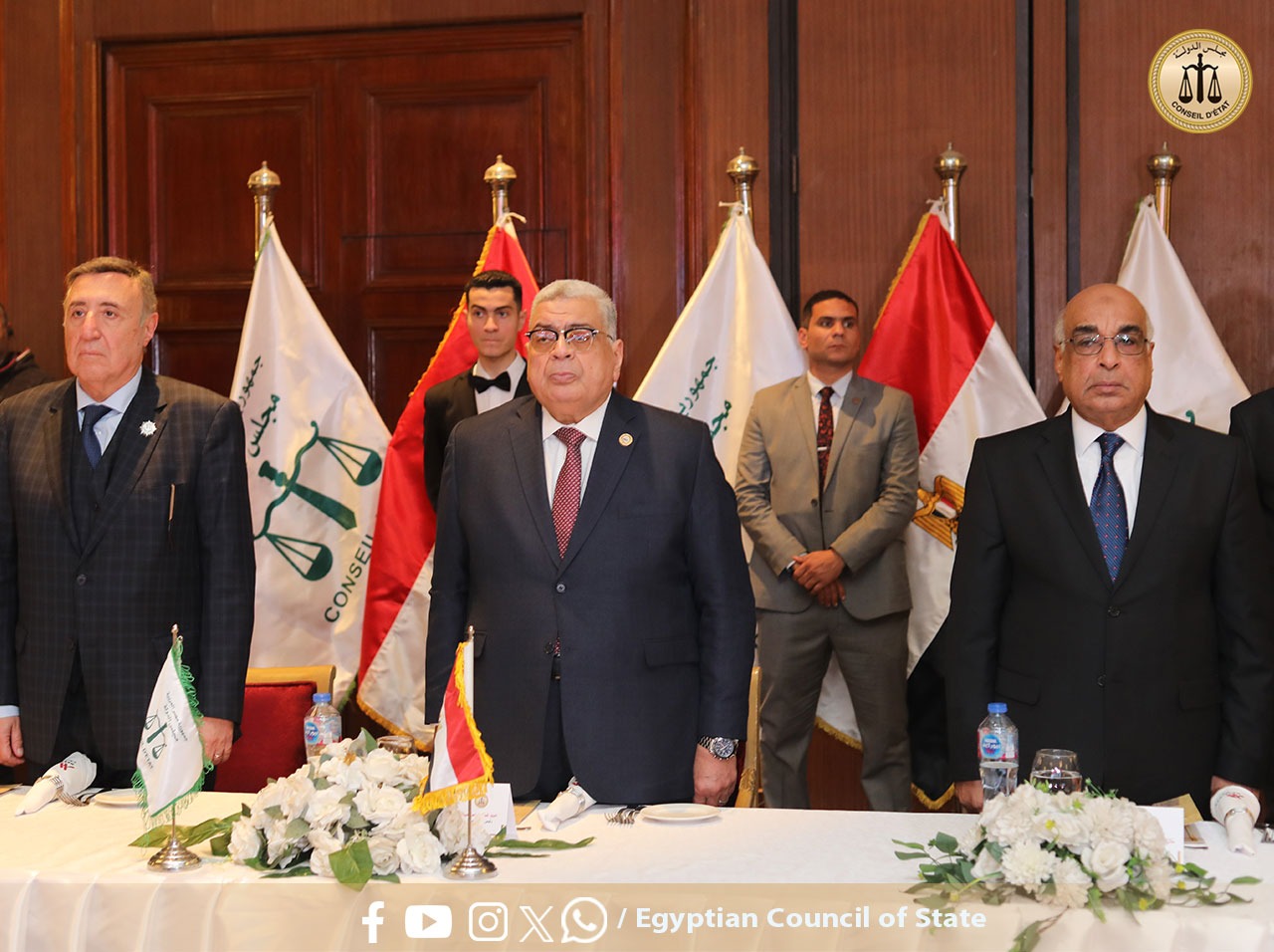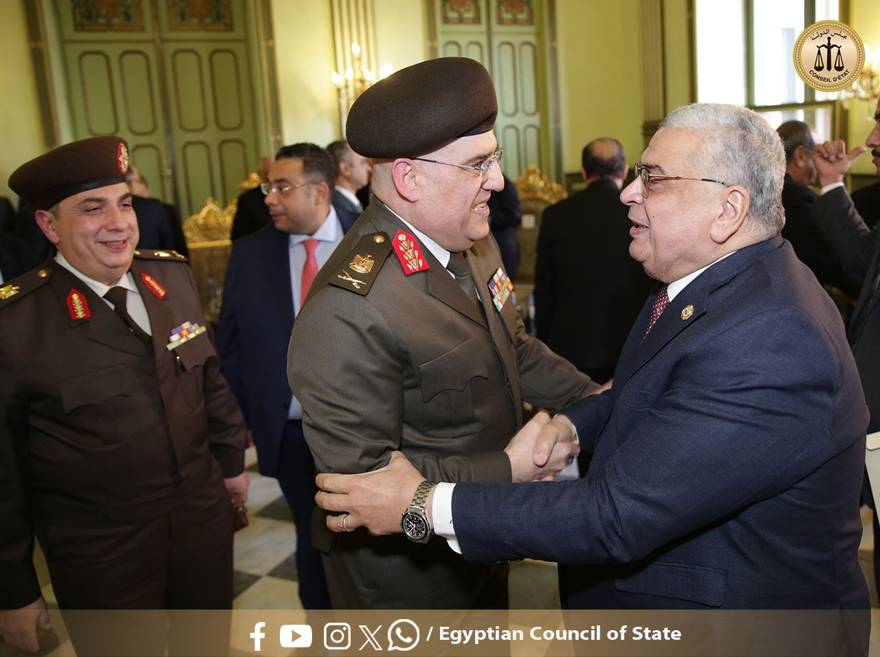 حيث نظم مجلس الدولة احتفالية بعنوان “يوم الوفاء والتميز” بفندق ماريوت في الزمالك. شهد الحفل إطلاق الموقع الإلكتروني الرسمي لمجلس الدولة، وتكريم 17 من القضاة والقاضيات الأكثر تميزًا في الإنجاز خلال العام القضائي 2024/2025، بالإضافة إلى تكريم أسماء القضاة الراحلين الذين وافتهم المنية أثناء خدمتهم، تقديرًا لعطائهم للوطن ولمجلس الدولة. كما تم خلال الحفل تكريم عدد من الموظفين المتميزين بالمجلس.