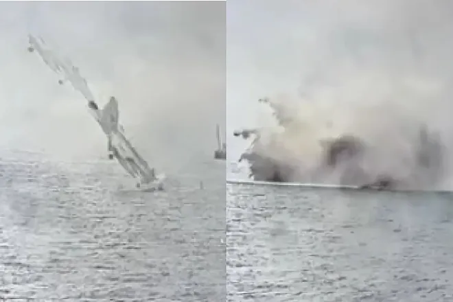 وأظهر مقطع فيديو متداول على وسائل التواصل الاجتماعي مشهدًا دراماتيكيًا للطائرة وهي تهوي بسرعة كبيرة قبل أن تصطدم بالمياه، ووفقًا لشهود عيان كانوا على متن قارب الصيد بريميير التابع لشركة إتش أند إم لاندينج، فقد شاهدوا الطيارين يقفزان بالمظلات قبل لحظات من سقوط الطائرة، وسارع طاقم القارب لإنقاذ الطيارين وسحبهما إلى بر الأمان من مياه الخليج.