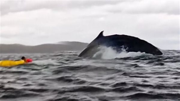 حوت أحدب يبتلع راكب قوارب الكاياك ويبصقه.. والأخير: اعتقدت إني ميت| فيديو