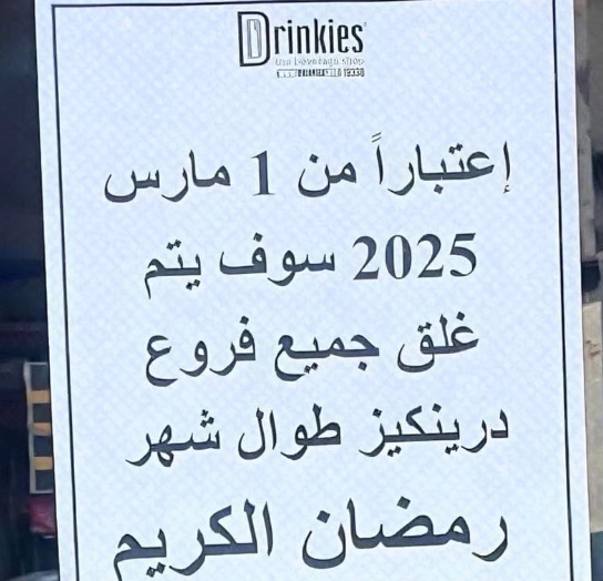 تزامنًا مع شهر رمضان.. غلق جميع فروع درينكيز للخمور بداية من السبت المقبل