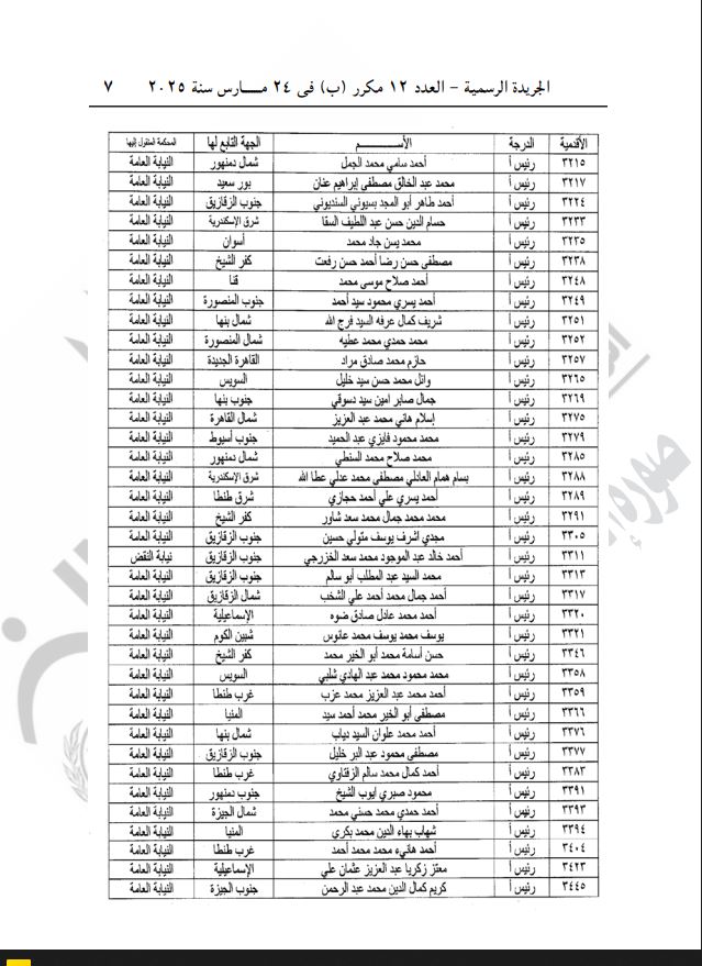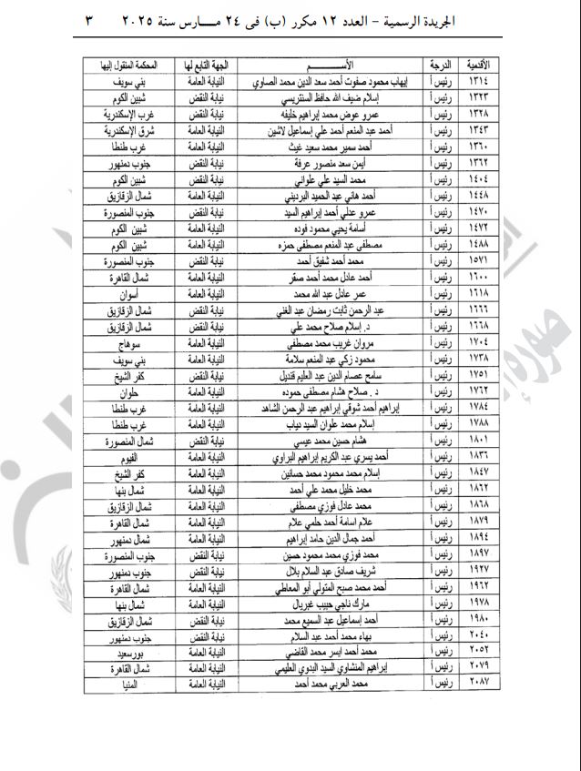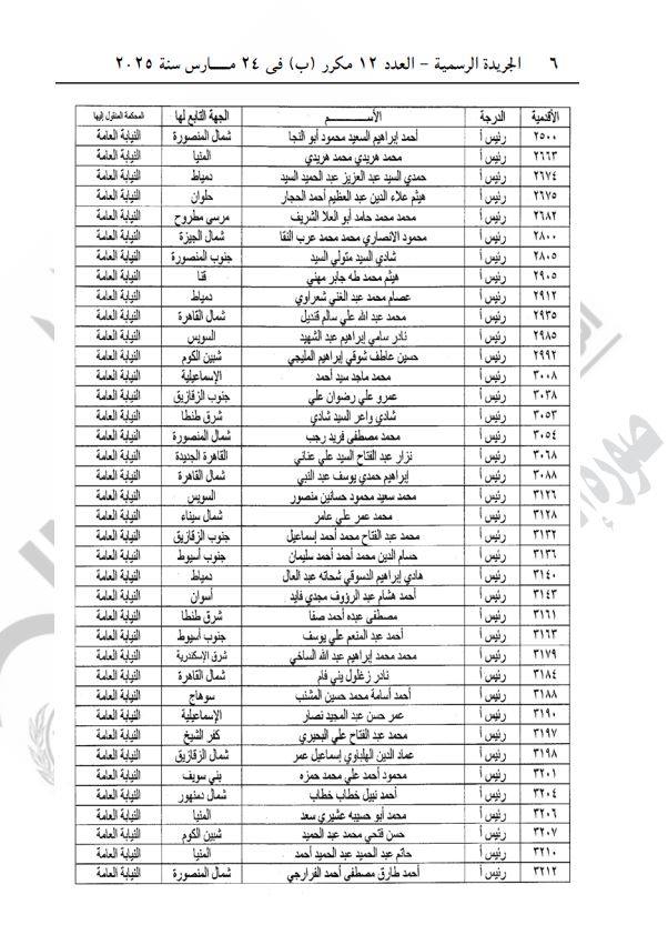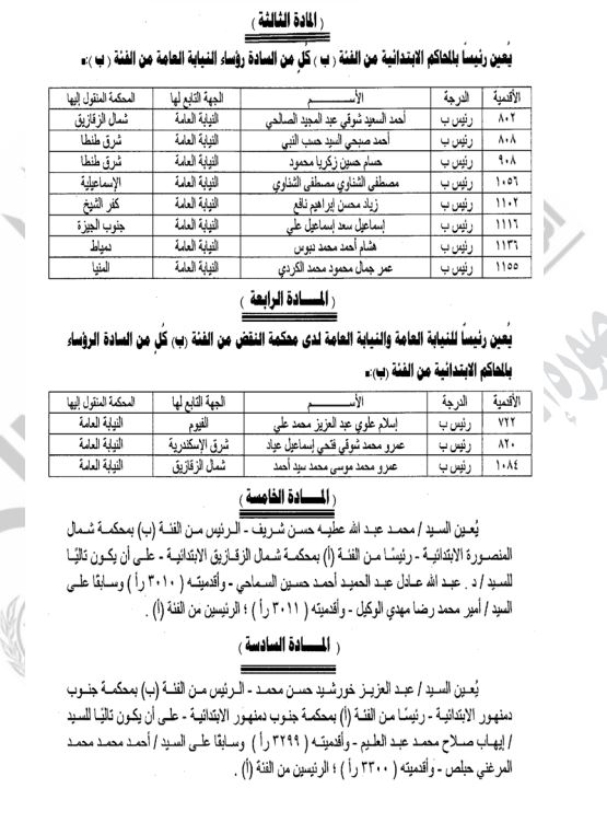 كما نشرت الجريدة الرسمية قرارا بشأن تعيين رئيسًا للنيابة العامة والنيابة العامة لدى محكمة النقض من الفئة (أ) كل من الرؤساء