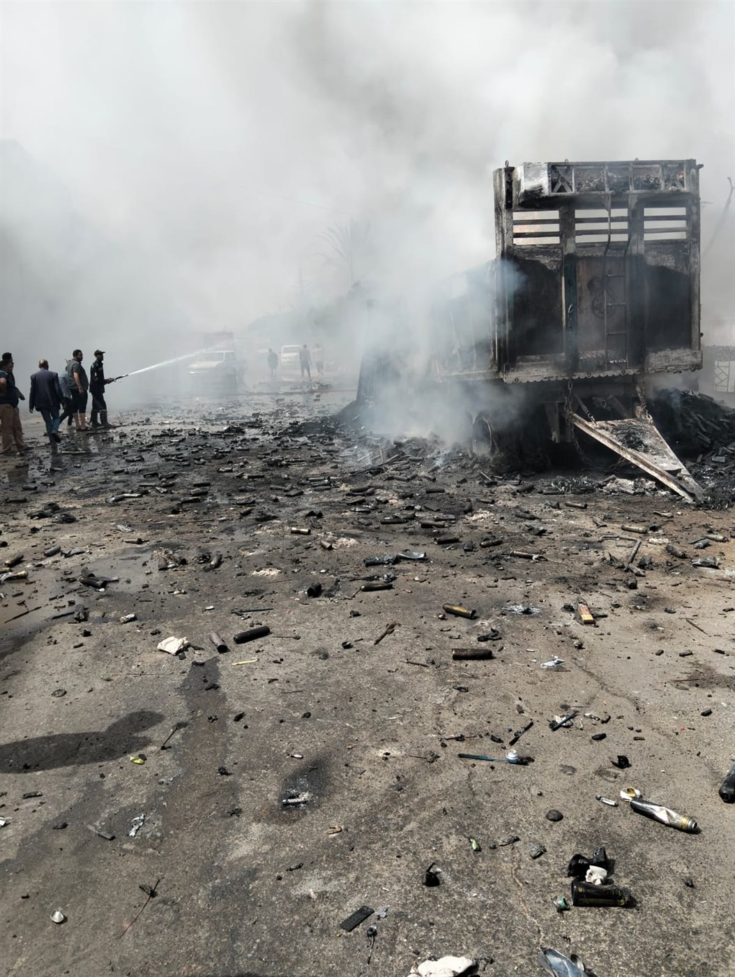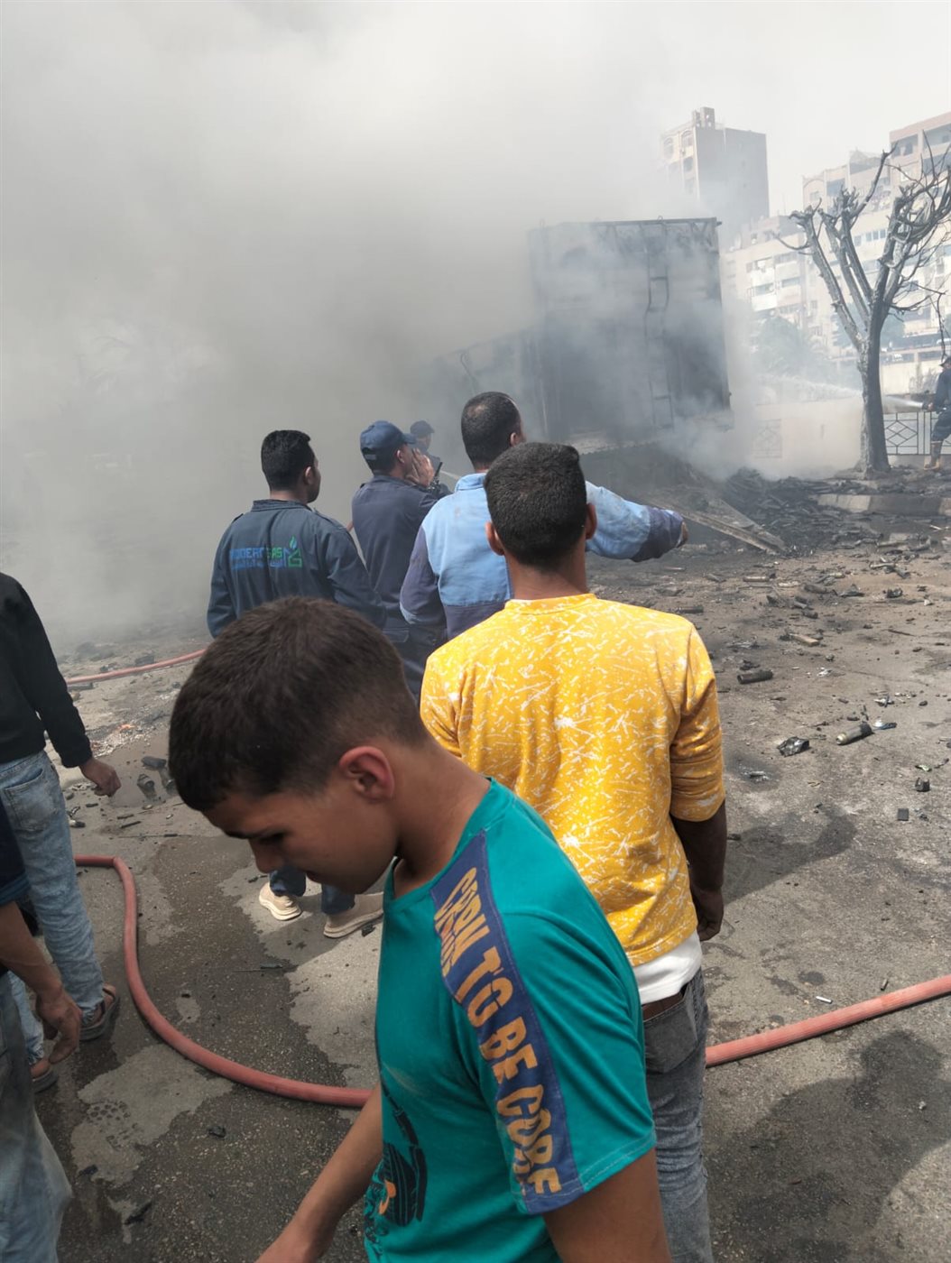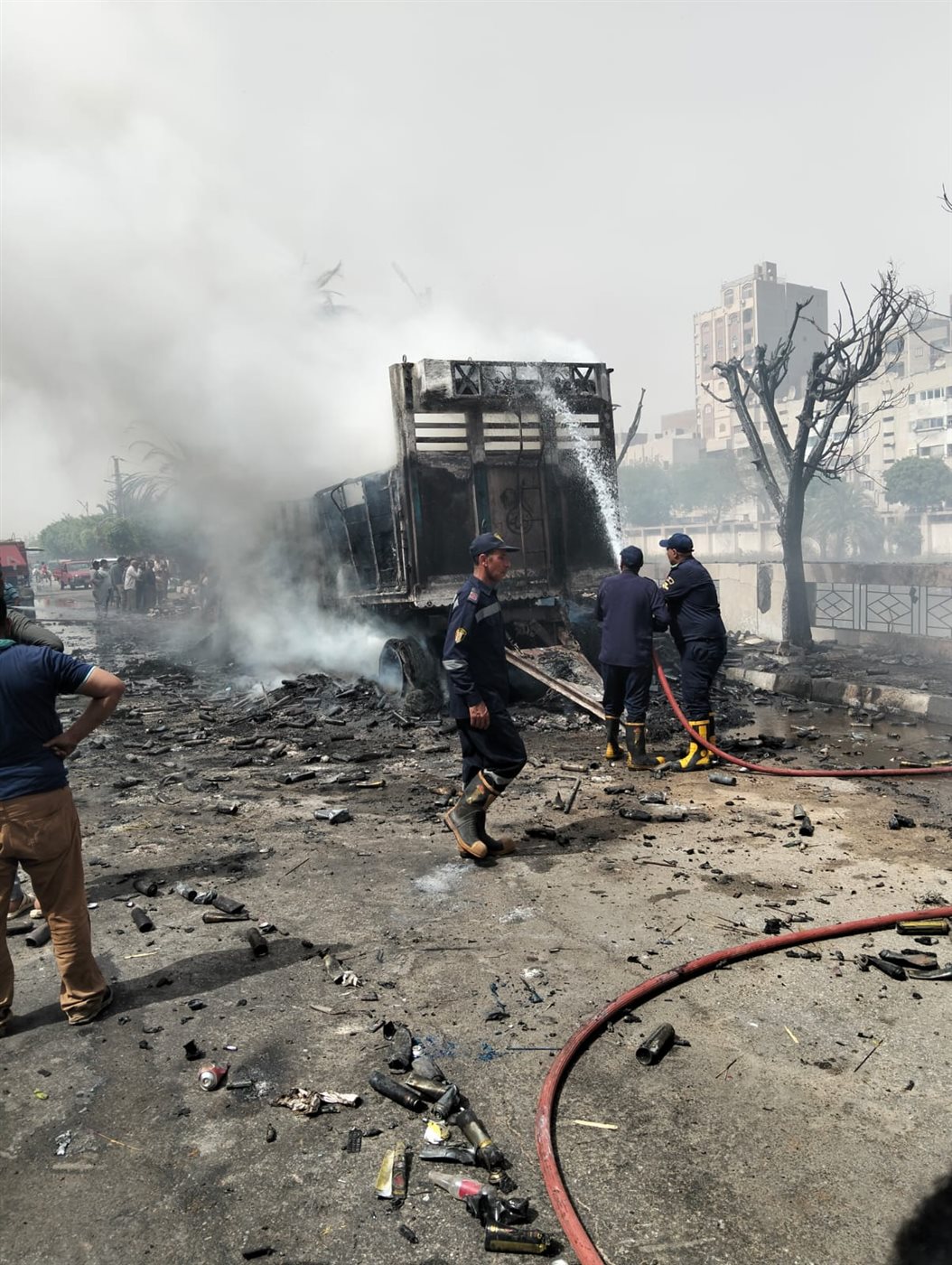 الدفع بـ 3 سيارات إطفاء للسيطرة على حريق في مقطورة تابعة لشركة شحن في سوهاج | صور