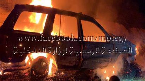 كما أسفر التعامل عن إحتراق السيارة بالكامل، وبتفتيشها عُثر بداخلها على بندقية آلية و6 خزن، ونظارة ميدان، وبقايا مبالغ مالية محترقة).
