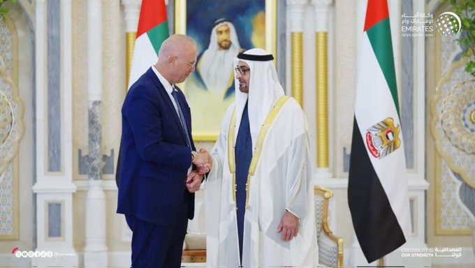 ووفقا لما أفادت به وكالة الأنباء الإماراتية، كان من ضمن السفراء، يوسي شيلي سفير إسرائيل، حيث رحب رئيس الإمارات خلال مراسم الاستقبال التي جرت في قصر الوطن في العاصمة أبوظبي، بالسفراء الجدد، معربا عن أمنياته لهم التوفيق في مهامهم لتعزيز علاقات الصداقة والتعاون بين دولة الإمارات ودولهم والتي تقوم على أسس الاحترام المتبادل والتعاون والمصالح المشتركة، مؤكدا سموه أنهم سيجدون كل دعم من مختلف الجهات المعنية لتسهيل عملهم في الدولة.