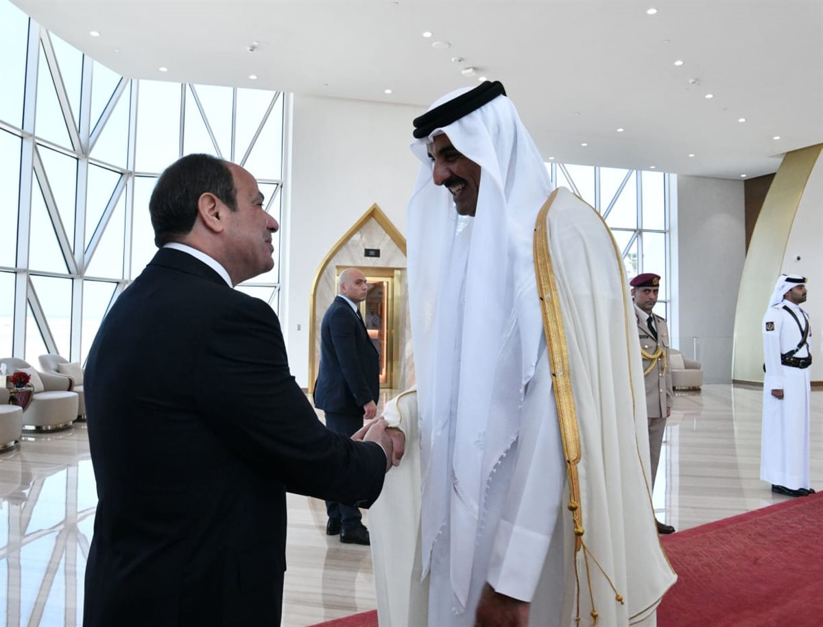 الرئيس السيسي يصل إلى الدوحة.. وأمير قطر في مقدمة مستقبليه بالمطار