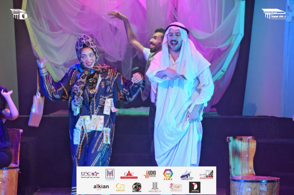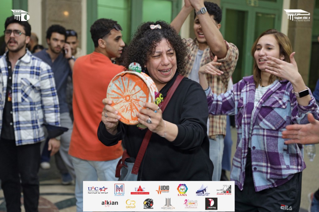 شارك أعضاء اللجنة العليا لمهرجان الفضاءات المسرحية المتعددة برئاسة الدكتور غادة جبارة فرحة المشاركين في عروض المهرجان، ومنهم الفنانة سماء ابراهيم والتي شاركت البطل والبطلة في تمثيل الزفة الخاصة بعرض «مع الشغل والجواز» قبل دخولها للجلوس في مسرح المعهد العالي للفنون المسرحية.