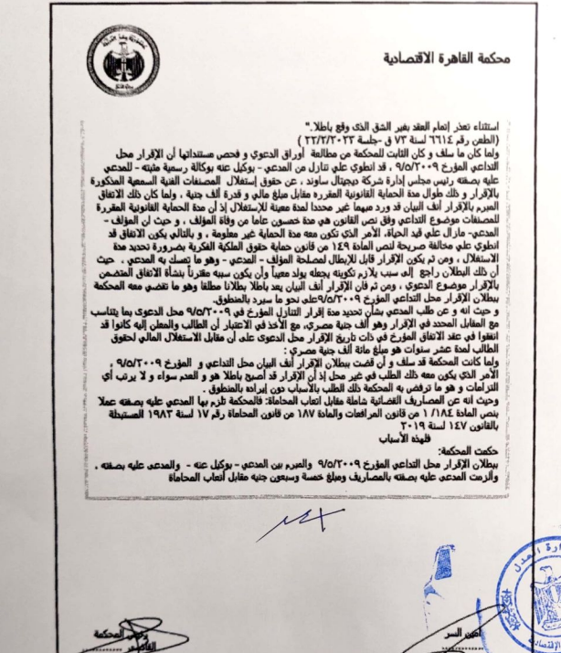 الحكم صدر بعد مسار قانوني معقد وطويل، يُعد محطة فاصلة في معركة حماية حقوق المبدعين، ورسالة قوية بأن حقوق الملكية الفكرية للفنانين ليست محل مساومة، وأن الدولة المصرية ومؤسساتها القضائية تقف إلى جانب رموزها الثقافية.