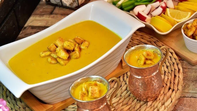 - يقدم في طبق الشوربة على السفرة بجانب الخبز المحمص.