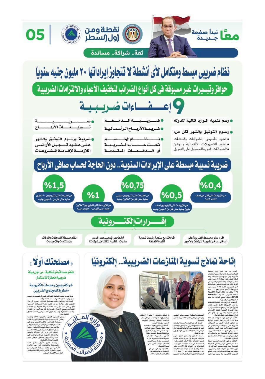 0.4 % من الإيرادات للمشروعات التي تقل عن نصف مليون جنيه