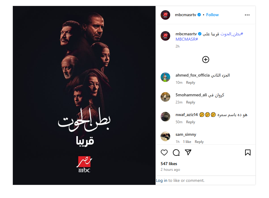 ونشرت منصة mbc عبر حسابها الرسمي بموقع تبادل الصور والفيديوهات إنستجرام، قائلة: بطن الحوت قريبًا على mbc.