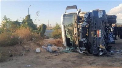 حالة المصابين في انقلاب سيارة نقل محملة بالدواجن على الطريق الإقليمي
