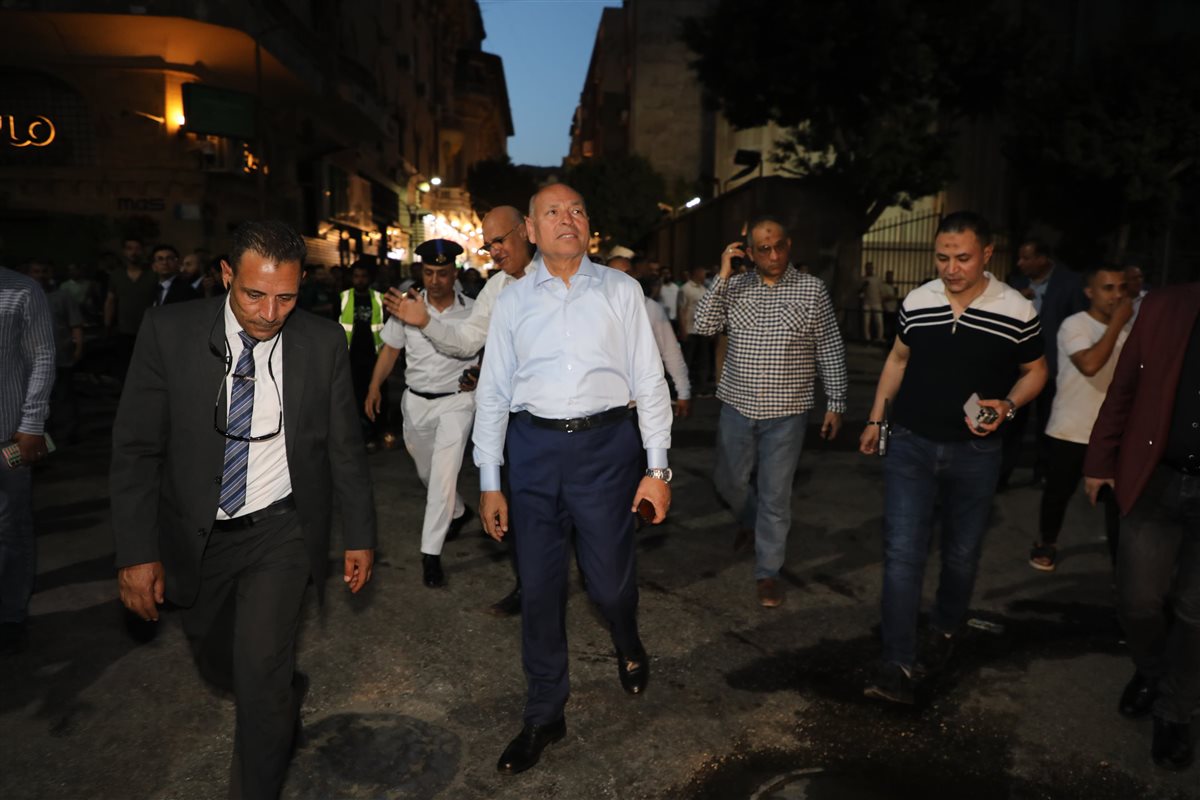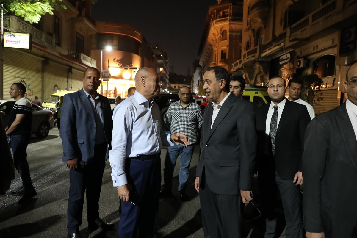 محافظ القاهرة يشرف على عمليات إطفاء حريق عقار بوسط البلد