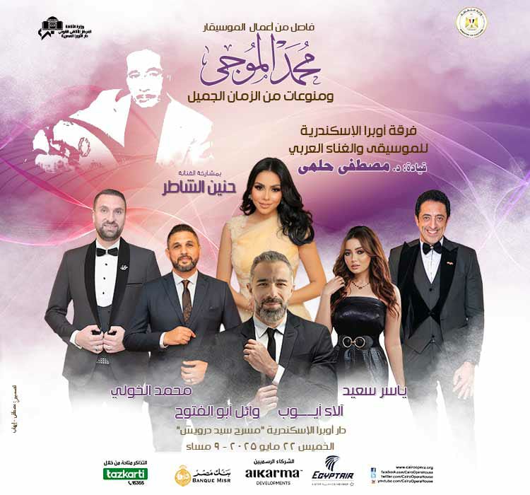 ضمن فعاليات وزارة الثقافة تقيم دار الأوبرا المصرية برئاسة الدكتور علاء عبد السلام حفلًا لفرقة أوبرا الإسكندرية للموسيقى والغناء العربي بقيادة المايسترو الدكتور مصطفى حلمي، في الـ 9 مساء الخميس 22 مايو على مسرح سيد درويش بـ أوبرا الإسكندرية.