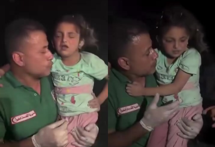 التقطت عدسات الكاميرا صورة فتاة فلسطينية تحاول النجاة والهرب من جحيم القصف الذي شنه جيش الاحتلال الإسرائيلي، على مدرسة تؤوي نازحين في مدينة غزة، لتعكس الواقع الذي يعيشه سكان القطاع المنكوب كل ساعة.