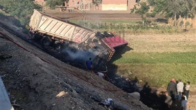 تحرير محضر بواقعة انقلاب سيارة نقل ثقيل من أعلى الطريق الإقليمي بالمنوفية