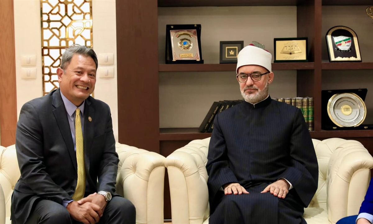 من جانبه، أعرب سعادة السفير التايلاندي عن تقديره لجهود دار الإفتاء المصرية في خدمة قضايا العالم الإسلامي، مشيدًا بالتطور الكبير الذي تشهده الدار في مجالات التدريب والإفتاء ومواجهة الفكر المتطرف، مؤكدًا تطلعه بلاده إلى تعزيز أواصر التعاون مع دار الإفتاء المصرية، والاستفادة من خبراتها العريقة، خاصة في تدريب المفتين وتطوير الخطاب الديني المعتدل في تايلاند، بما يسهم في نشر قيم التسامح والتعايش السلمي.