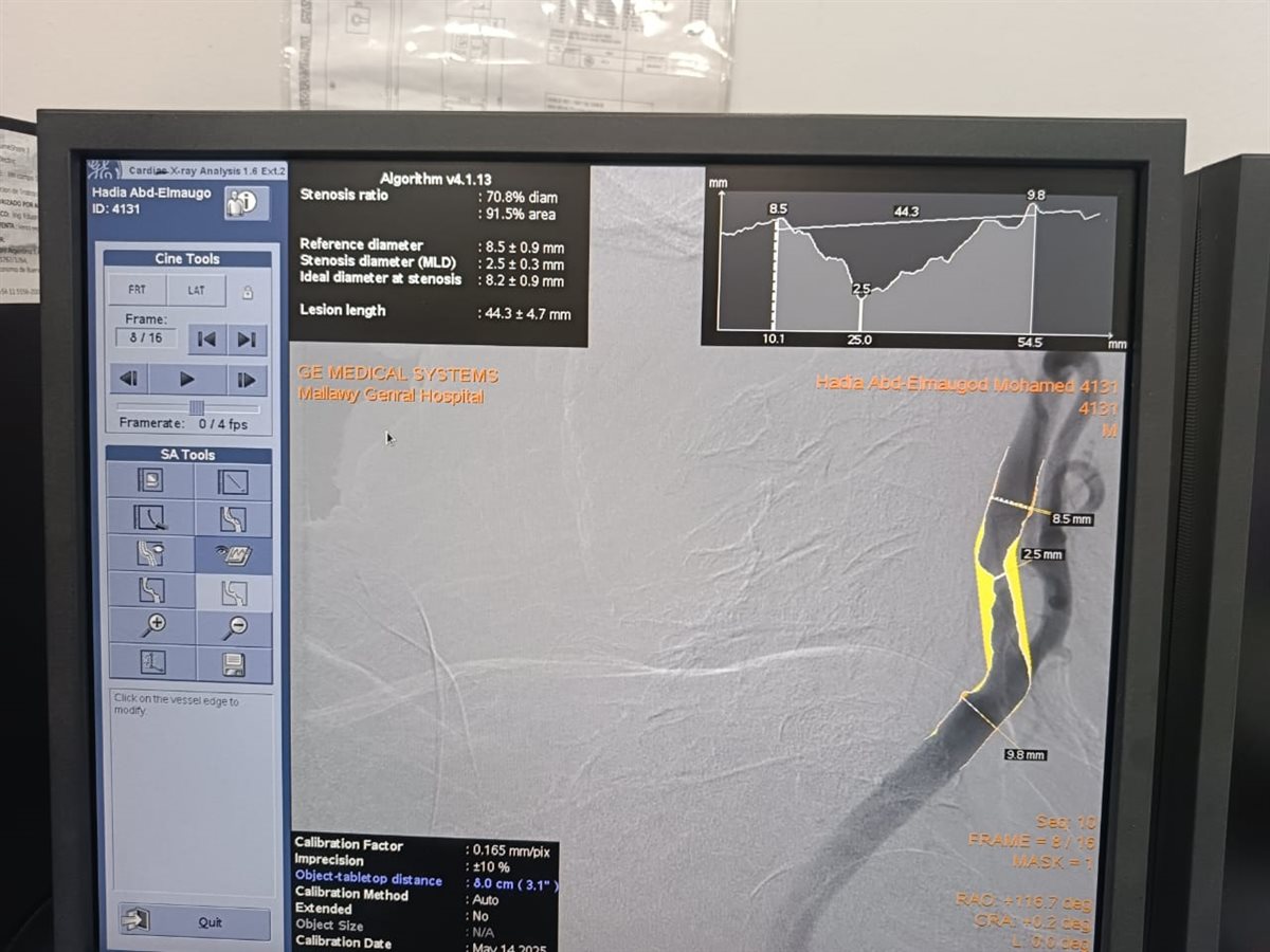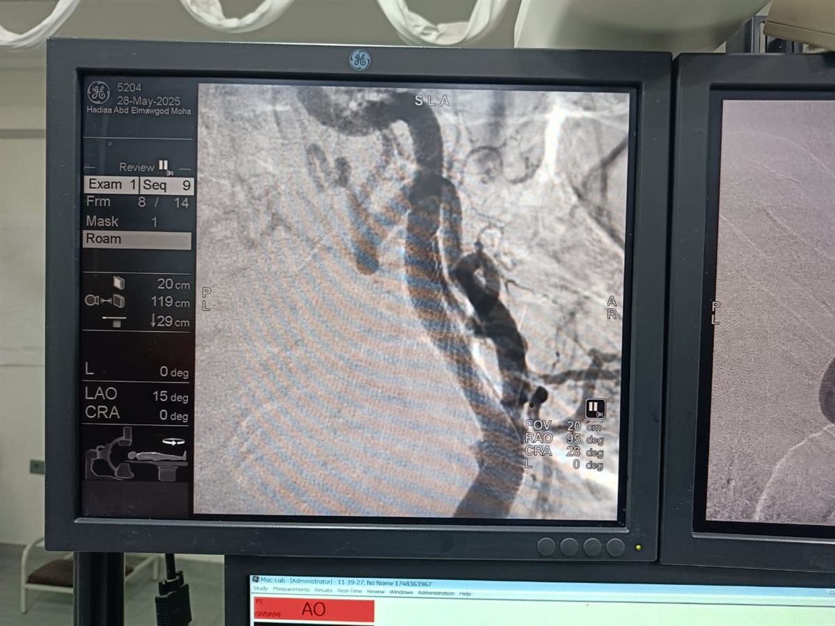 وخلال العملية، واجه الفريق الطبي تحديات كبيرة بسبب الانحراف الشديد للأوعية الدموية الناتج عن التصلب الشرياني، ما تطلب استخدام مسار غير تقليدي من الفخذ الأيسر (Left Femoral Approach) للوصول إلى الشريان المصاب.