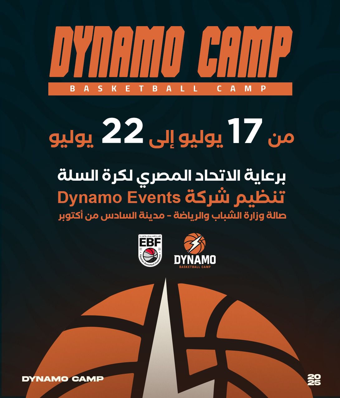 يقيم الاتحاد المصري لكرة السلة بالتعاون مع Dynamo Events المعسكر التدريبي الدولي دينامو كامب، والمقرر إقامته خلال الفترة من 17 إلى 22 يوليو المقبل، وذلك بصالة وزارة الشباب والرياضة بمدينة السادس من أكتوبر، تحت رعاية الاتحاد المصري لكرة السلة.