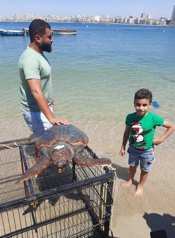 إطلاق سلحفاة قادمة من اليونان إلى شواطئ البحر بالإسكندرية