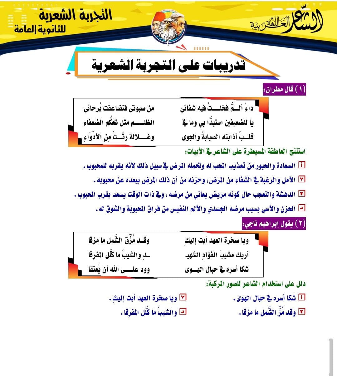 وجاءت مراجعة اللغة العربية لطلاب الثانوية العامة كالآتي: