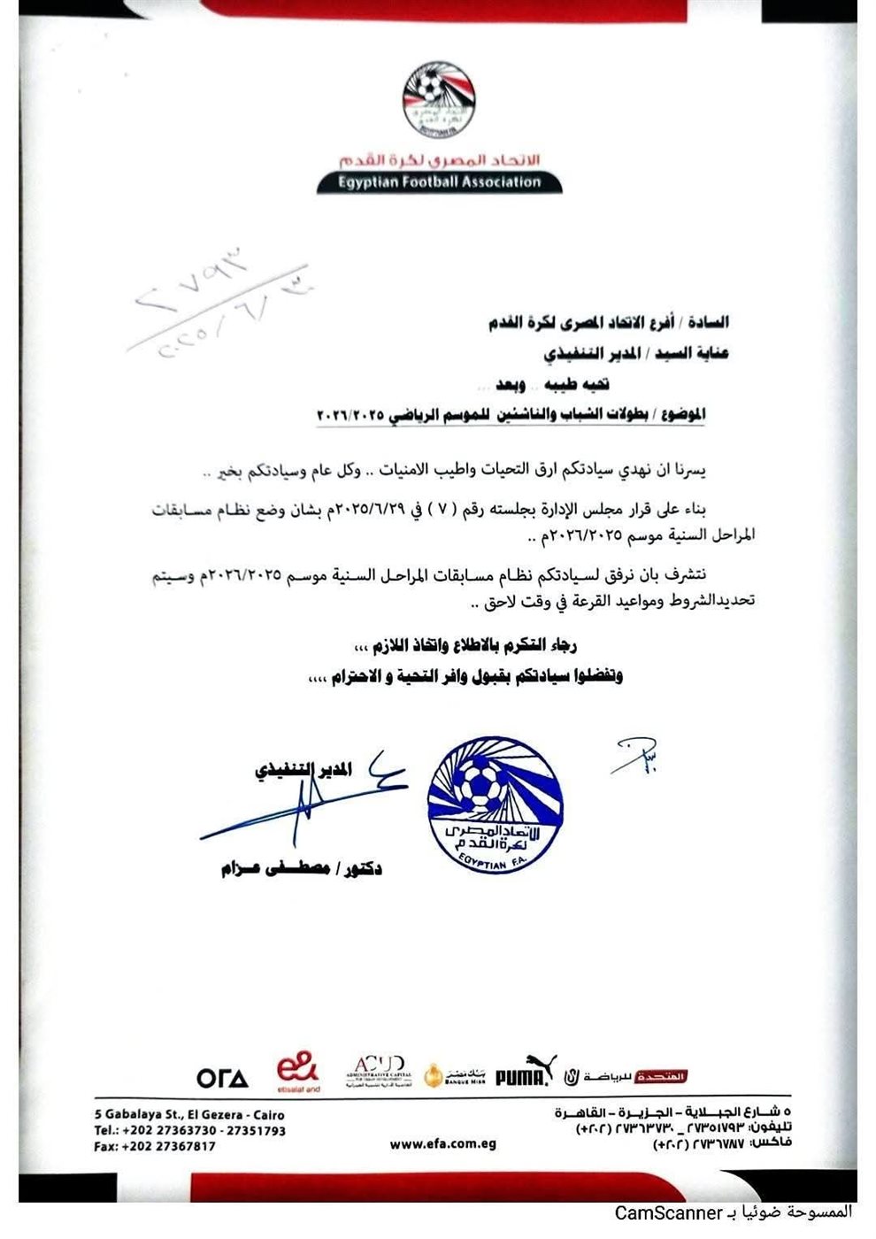 أرسل اتحاد الكرة خطابات رسمية إلى الأندية بمختلف الأقسام، أخطرها فيها بنظام مسابقات الشباب والناشئين للموسم الكروي الجديد 2025 – 2026.