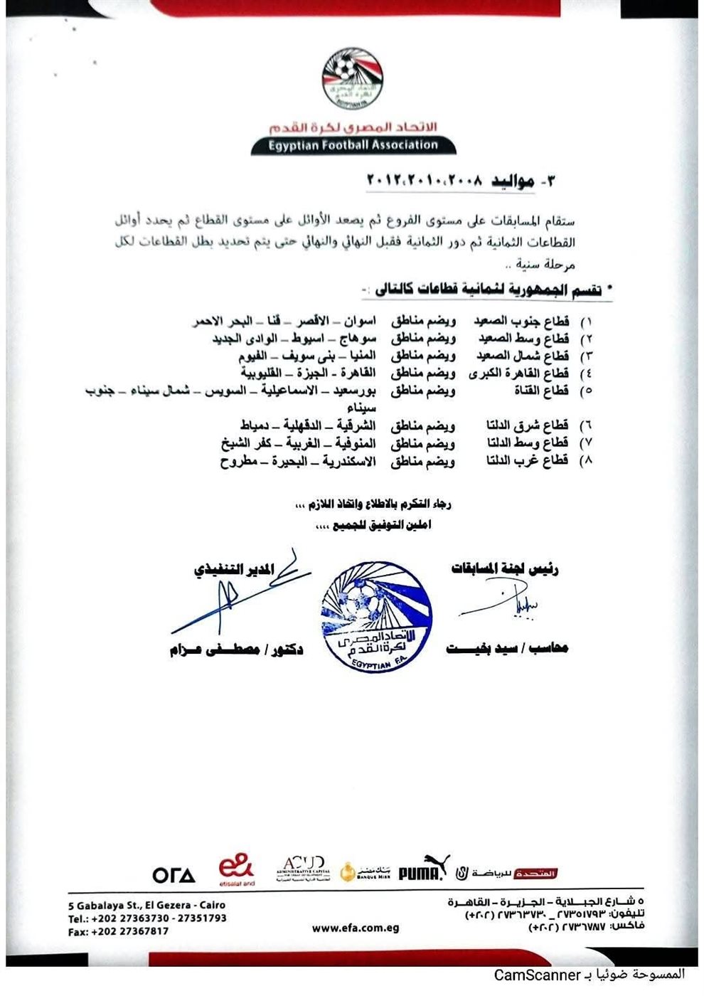 كذلك من المقرر تنظيم مسابقات لمواليد كل من السنوات 2008 و2010 و2012 على مستوى المناطق للتأهل إلى مرحلة القطاعات، حيث تم تقسيم الجمهورية إلى 8 قطاعات حسب التقسيم الجغرافي.