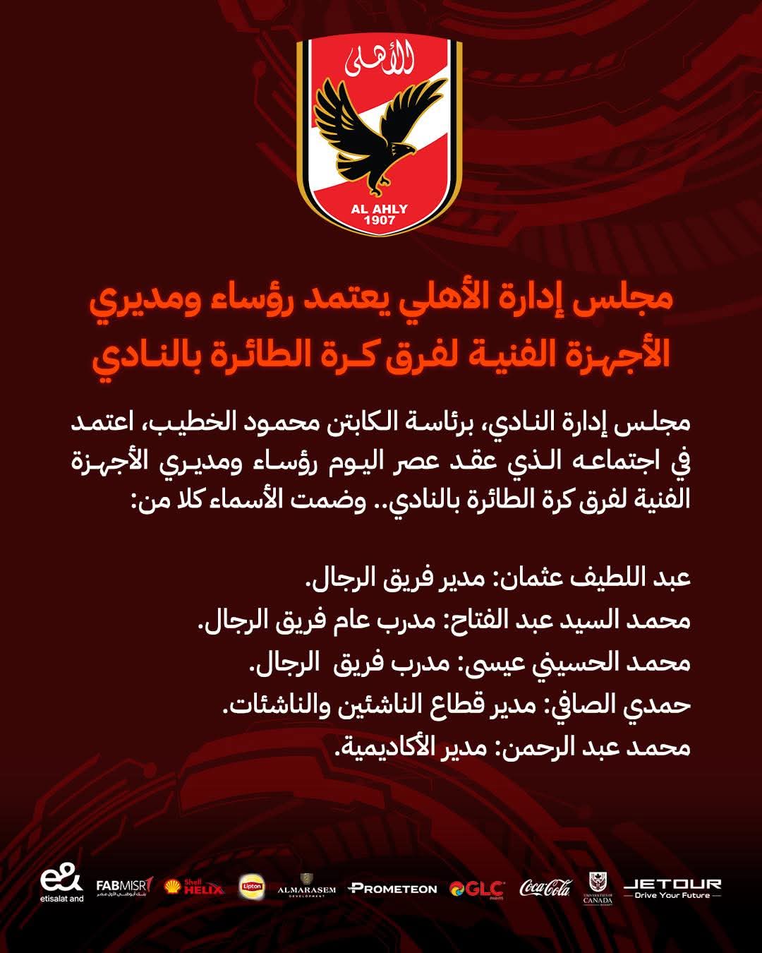 ويأتي هذا التشكيل في إطار سعي النادي إلى تعزيز الاستقرار الفني والإداري داخل فرق الكرة الطائرة، والاستفادة من الخبرات الكبيرة المتوفرة داخل الجهاز الفني، لضمان المنافسة بقوة على كافة البطولات المحلية والإفريقية.