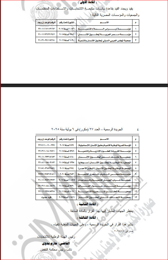 نشرت الجريدة الرسمية في عددها الصادر منذ قليل، قرارًا جديدًا للهيئة الوطنية للانتخابات، برئاسة المستشار حازم بدوي، بشأن قبول طلبات منظمات المجتمع المدني المصرية للقيد وتجديد القيد بقاعدة بيانات متابعة البيانات والاستفتاءات.