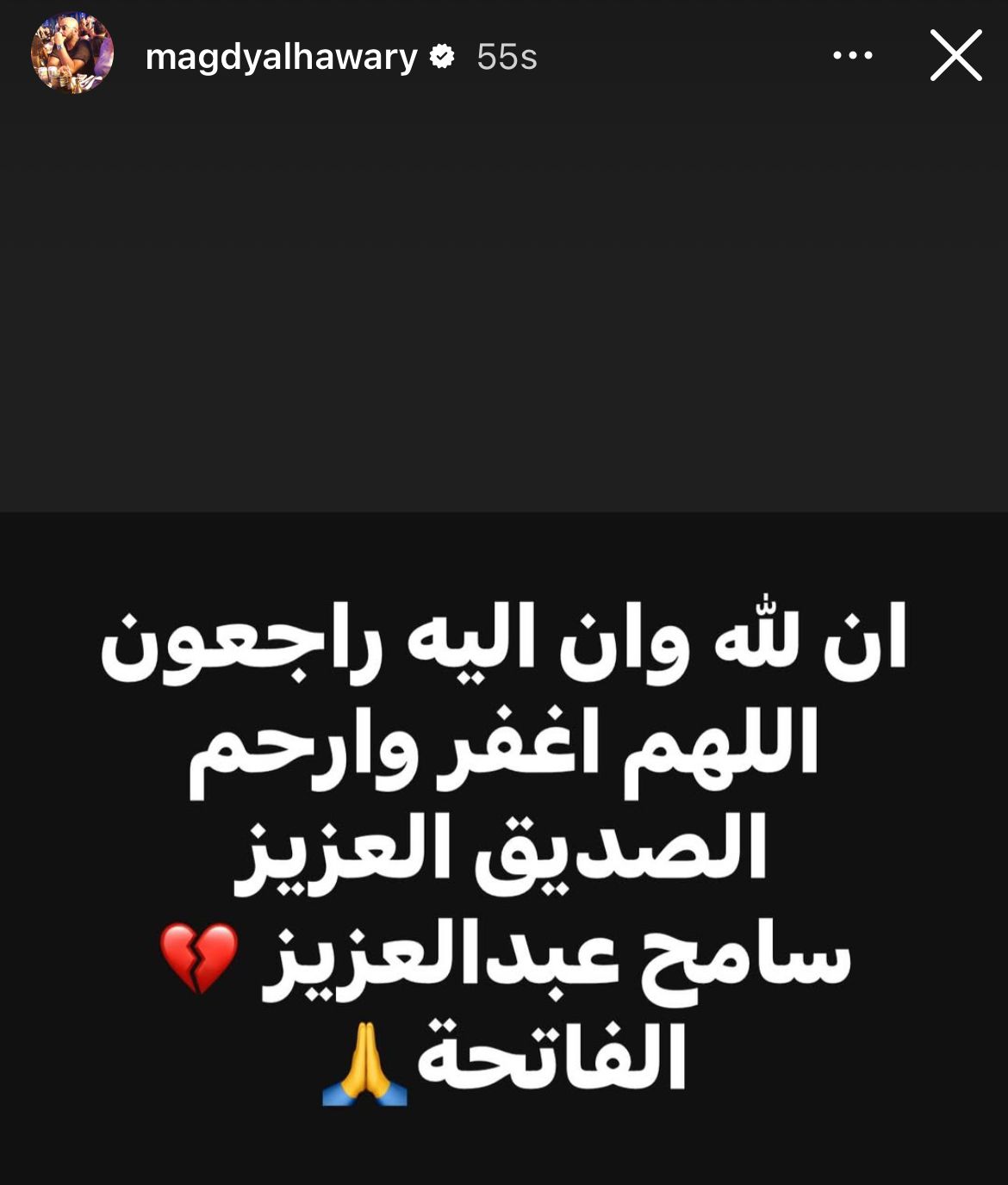 بينما كتب المخرج مجد الهواري، منشورًا عبر حسابه الشخصي بمواقع التواصل الاجتماعي: إنا لله وإنا إليه راجعون، اللهم أغفر له وأرحم الصديق العزيز سامح عبد العزيز، الفاتحة.