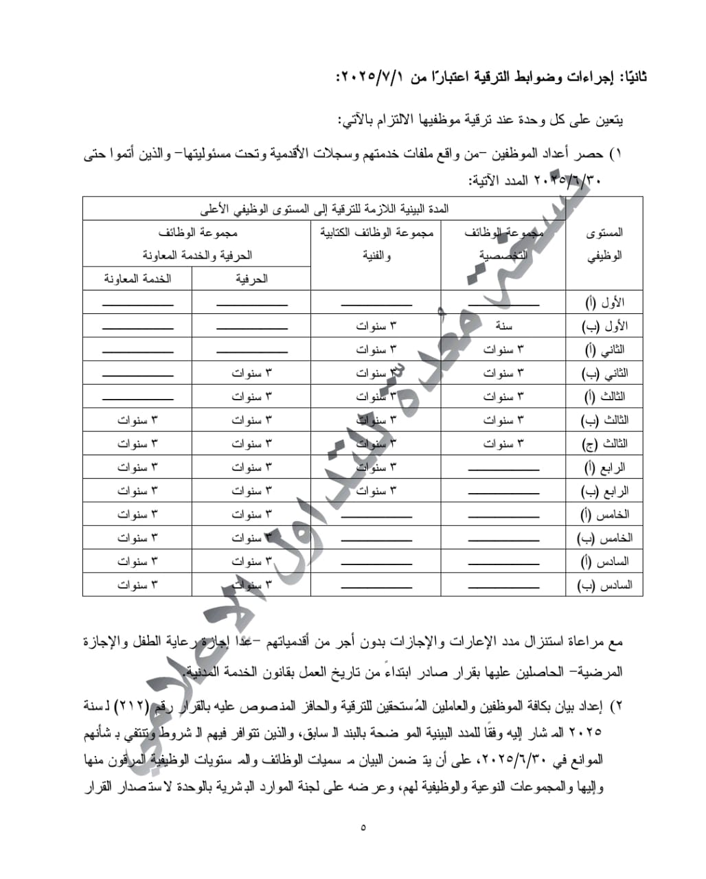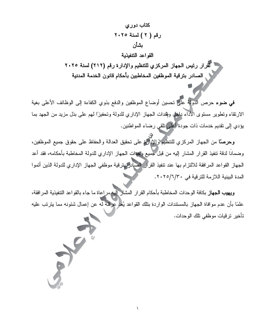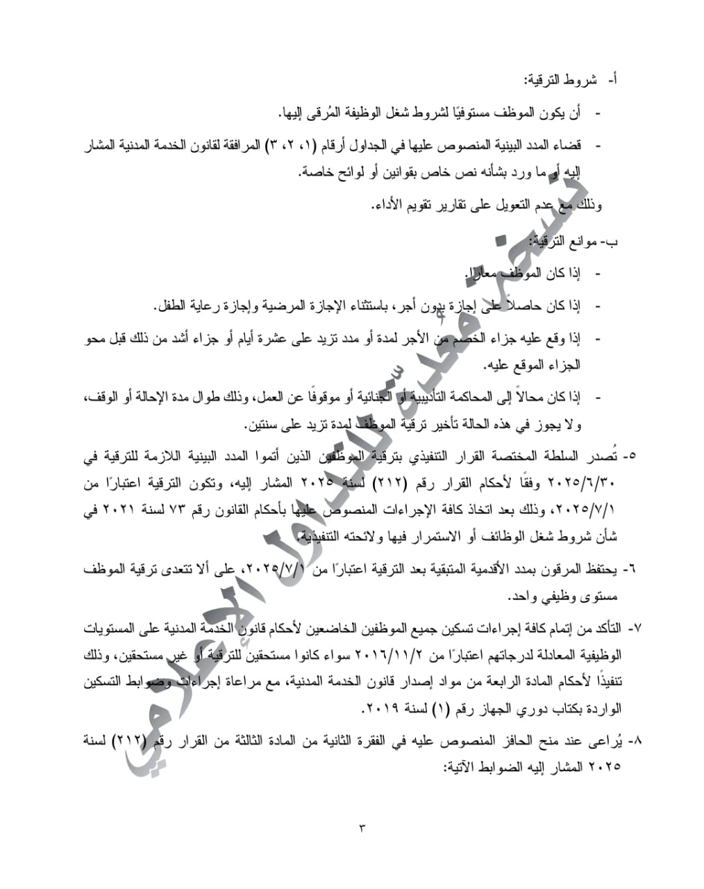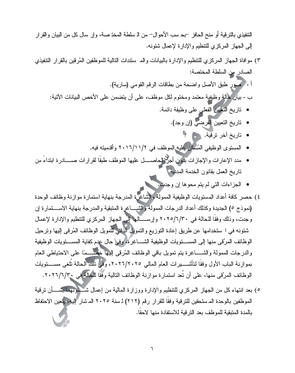 • موعد التنفيذ: تصدر القرارات التنفيذية للترقية اعتبارًا من 1 يوليو الجاري، بعد اعتمادها من لجنة الموارد البشرية بالجهات المعنية ومراجعتها من الجهاز ووزارة المالية.