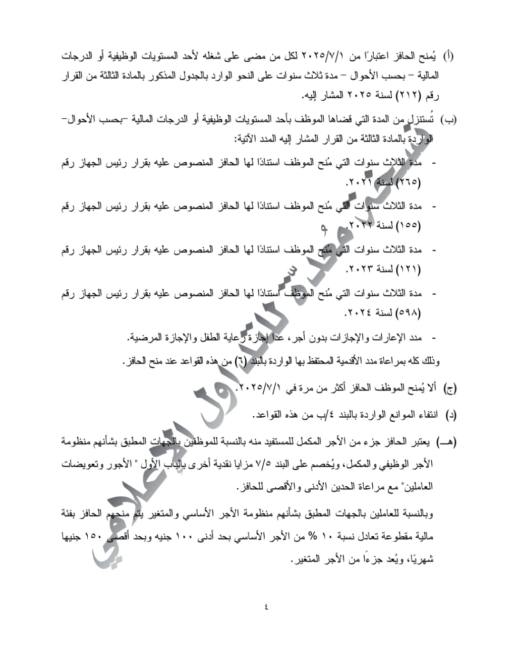 • الحافز المالي: يُمنح حافز مالي إضافي للموظفين الذين مضت ثلاث سنوات على شغلهم لمستوى وظيفي أو درجة مالية، وفقًا لضوابط محددة، ويُحتسب ضمن الأجر المكمل أو المتغير حسب الجهة التابع لها الموظف.