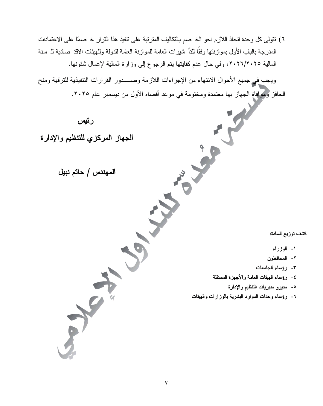 ودعا الجهاز كافة الجهات الحكومية إلى الالتزام التام بالقواعد والإجراءات الصادرة، مؤكدًا أن التعاون الجاد في تنفيذ القرار يعزز مناخ العدالة ويخدم الصالح العام.