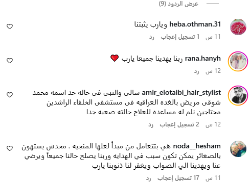 وانهالت التعليقات على سالي عبد السلام، من قِبل متابعيها، التي جاءت كالتالي: ربنا يثبتها، ربنا يهدينا جميعا، هي بتتعامل بمبدأ لعلها المنجية، محدش يستهون بالصغائر، يمكن تكون سبب في الهداية وربنا يصلح حالنا جميعا ويرضى عنا ويهدينا إلى الصواب.