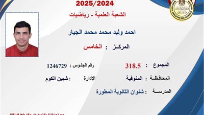 وجاءت قائمة أوائل الثانوية العامة 2025، كالتالي حيث شملت قائمة الأوائل طلابًا من مختلف المحافظات، مع تنوع ملحوظ في توزيع المدارس ما بين الرسمية والتجريبية والخاصة، ما يعكس اتساع قاعدة التفوق هذا العام، واستقرار نسبي في مستوى الأداء العام للطلاب، ومن المقرر أن تُتاح نتيجة الثانوية العامة 2025 كاملة عبر الموقع الرسمي لوزارة التربية والتعليم خلال الساعات الأولى من صباح غدٍ الأربعاء، على أن تُعلن داخل المدارس في نفس اليوم.