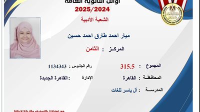 نوران السادس علمي علوم على مستوي الجمهورية بالبحيرة: مثلي الأعلى الدكتور مجدي يعقوب.. ودائما بطلع من الأوائل