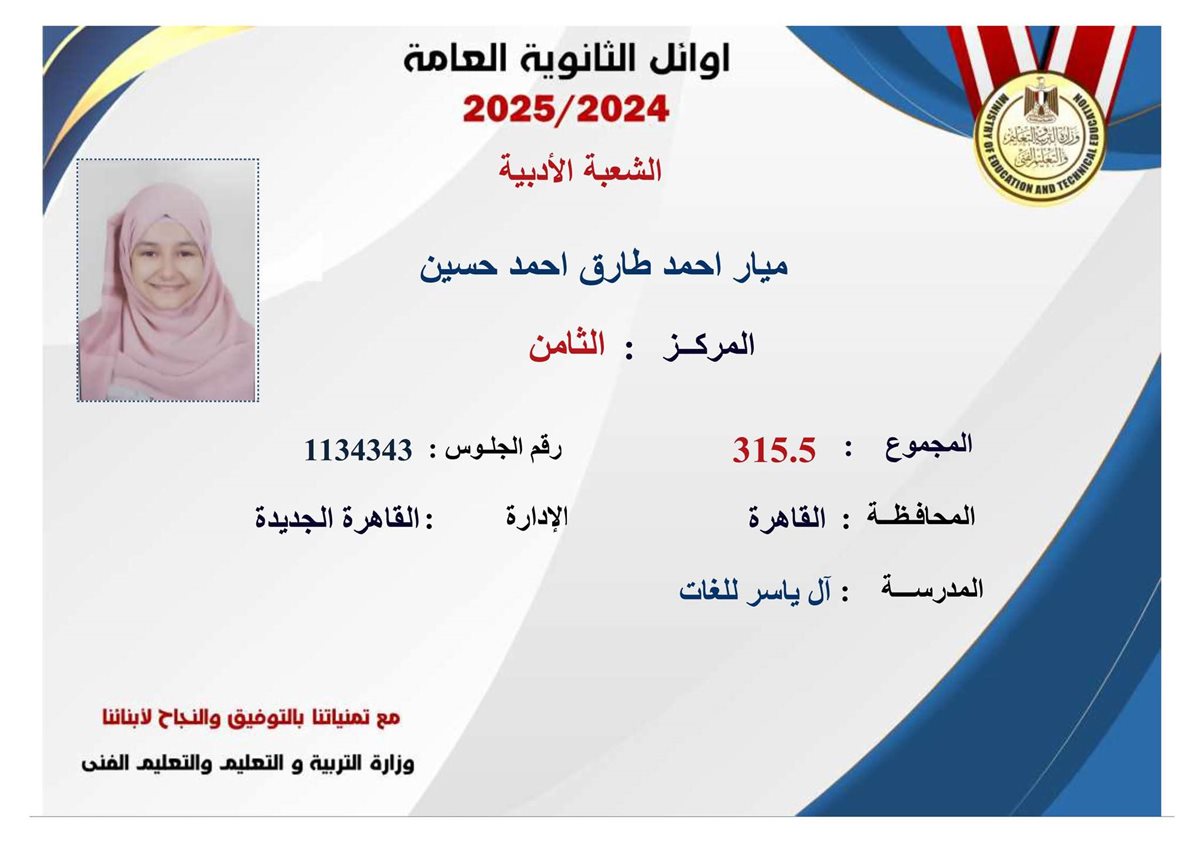 العاصمة تتصدر بـ 12 طالب وطالبة.. محافظ القاهرة يهنئ الطلاب الأوائل بالثانوية العامة