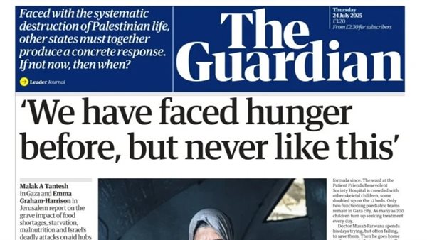 في تقرير صادم تصدّر صفحتها الأولى اليوم، حذّرت صحيفة الجارديان البريطانية من أن قطاع غزة يواجه أسوأ موجة جوع في الذاكرة الحية، في ظل استمرار القتال وتعطل إيصال المساعدات الإنسانية، التقرير حمل عنوانًا موجزًا ومعبّرًا: "غزة.. مجاعة".
