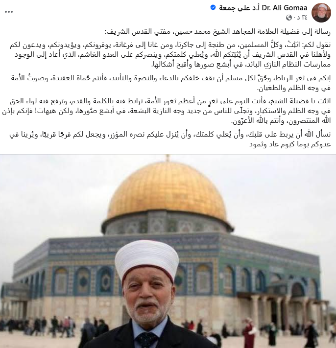 علي جمعة يوجه رسالة دعم إلى مفتي القدس