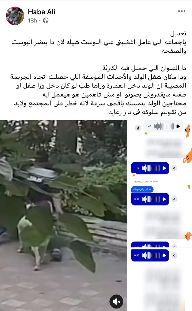 واستغاثت الفتاة عبر المنشور بسرعة القبض على المتهم وإيداعه إحدى دور الرعاية لإعادة تأهيله نفسيًا وسلوكيًا، مؤكدة أن الواقعة لا تحتمل التساهل أو التبرير.