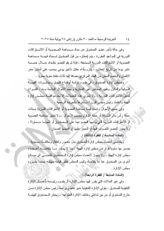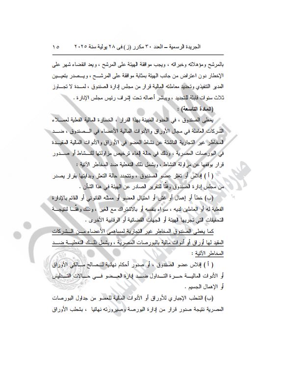 قرار إعادة تنظيم صندوق تأمين المتعاملين من المخاطر غير التجارية بالبورصة