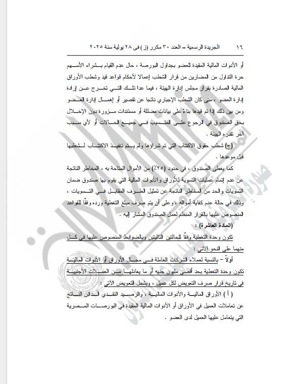 الجريدة الرسمية تنشر قرار إعادة تنظيم صندوق تأمين المتعاملين من المخاطر غير التجارية بالبورصة