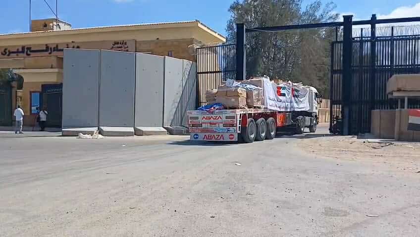 عبرت عدد من شاحنات المساعدات الإغاثية التابعة لدولة الإمارات العربية المتحدة، معبر رفح البري، متجهة إلى قطاع غزة.