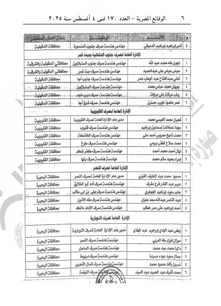 نشرت الجريدة الرسمية في عددها رقم 170 الصادر بتاريخ 4 أغسطس 2025، قرار وزير العدل رقم 2193 لسنة 2025، بشأن تخويل بعض العاملين بوزارة المواد المائية والري صفة مأموري الضبط القضائي.
