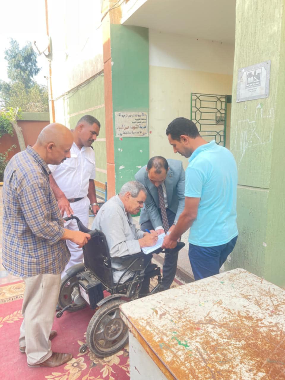 انتخابات الشيوخ.. رئيس لجنة مدرسة الشهيد حسن شديد بالقليوبية يقدّم المساعدة لكبار السن