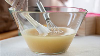 - عندما يبرد الصابون قم بإضافة عصير الليمون مع التقليب.