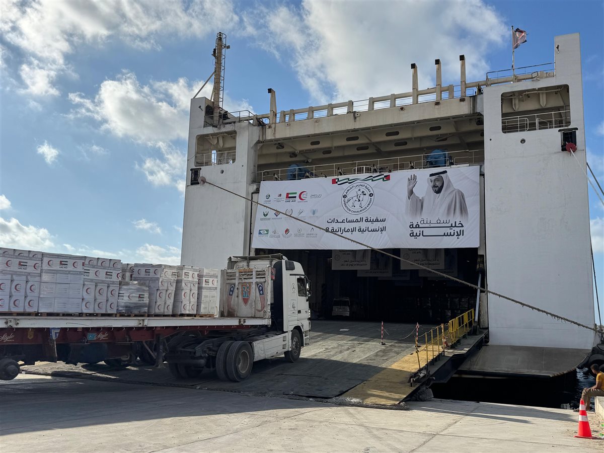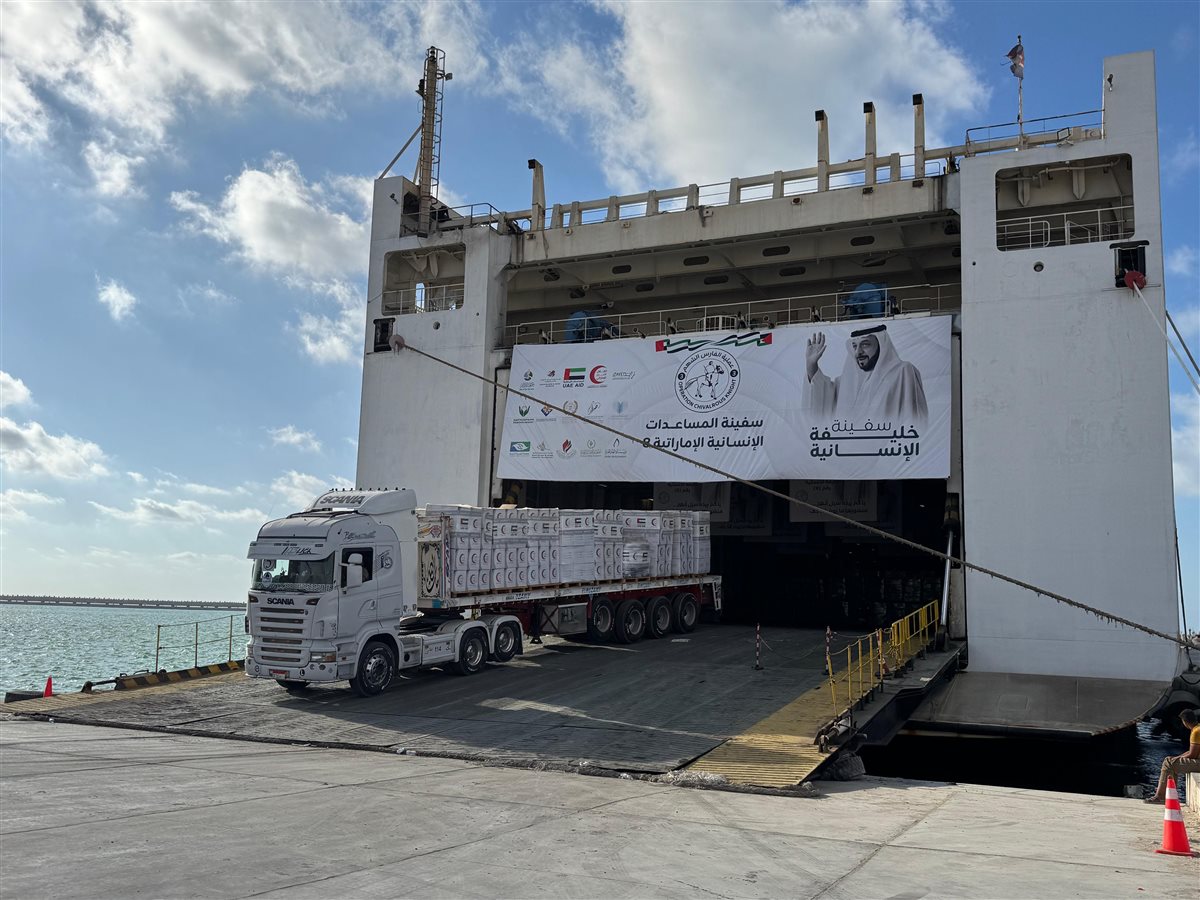 تفريغ السفينة الإماراتية خليفة الإنسانية 8 بميناء العريش تمهيدًا لإدخال حمولتها إلى غزة