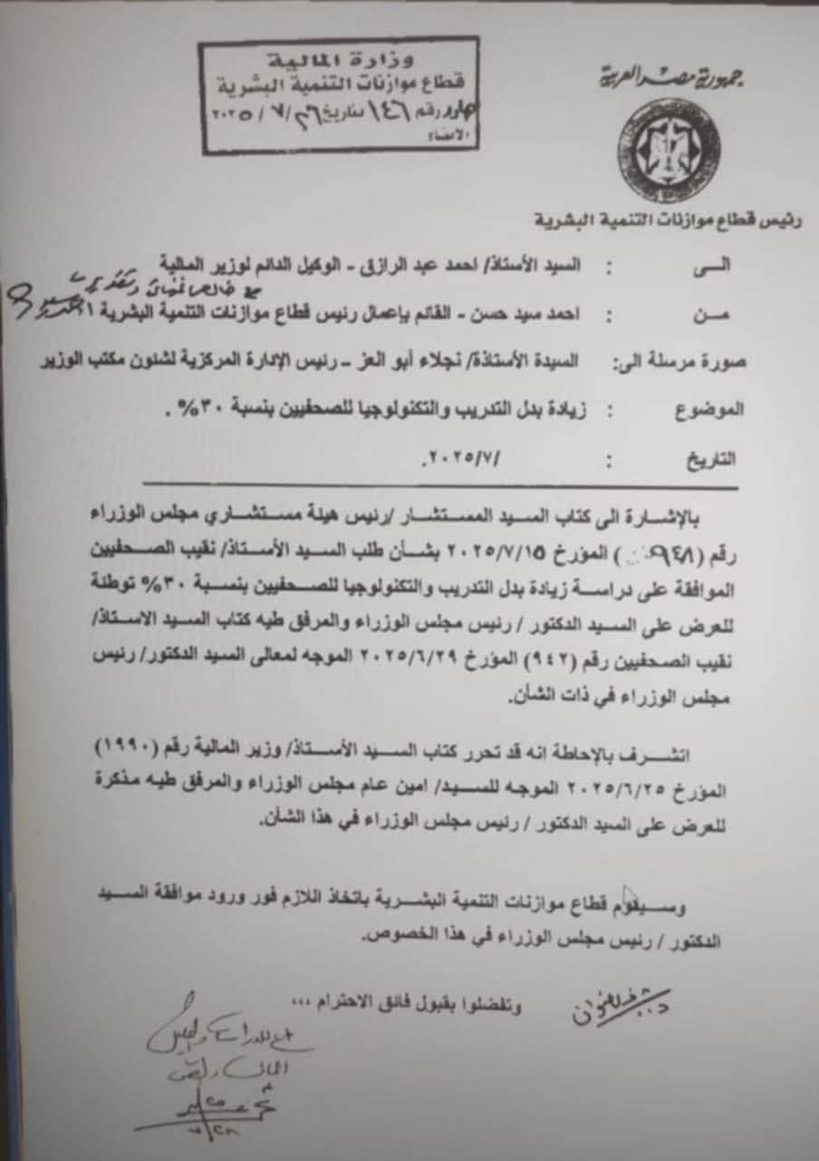 زيادة بدل الصحفيين 30% بعد موافقة مجلس الوزراء│ مستند